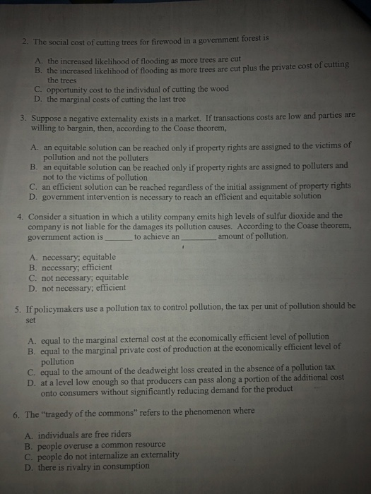 . There are no transactions costs. The Coase theorem will hold only if. When negative externalities exist in a market it the producers are forced to pay a pigovian tax then.