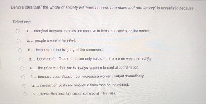 Solved Lenin S Idea That The Whole Of Society Will Have Chegg Com