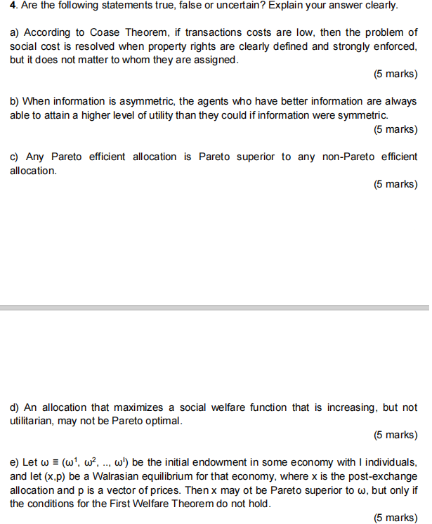 Solved 5 The Coase Theorem Will Apply Only If A The Courts Chegg Com