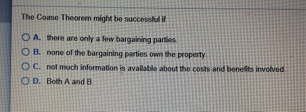Solved The Coase Theorem Might Be Successful If O A There Chegg Com