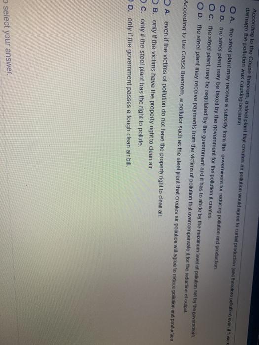 Solved D Question 35 1 Pts According To The Coase Theorem Chegg Com