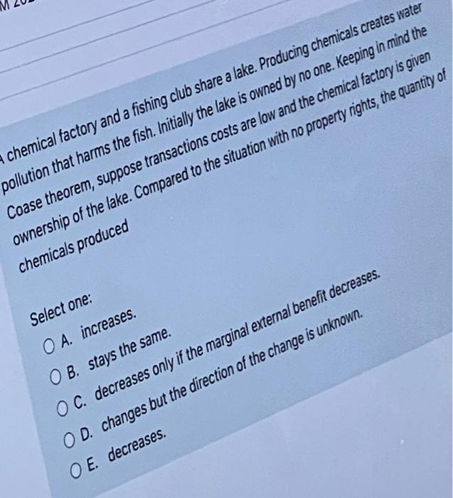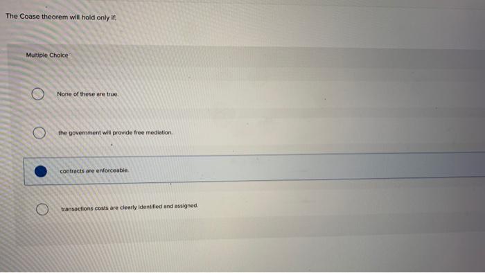 Solved The Coase Theorem Will Hold Only If Multiple Choice Chegg Com