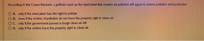 Solved According To The Coase Theorem A Pollutor Such As Chegg Com