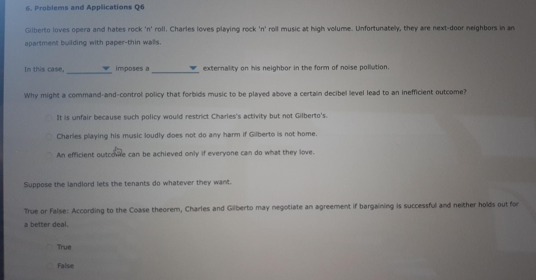 People can make enforceable agreements. Y game is empty. Solved The Coase theorem will hold only if.